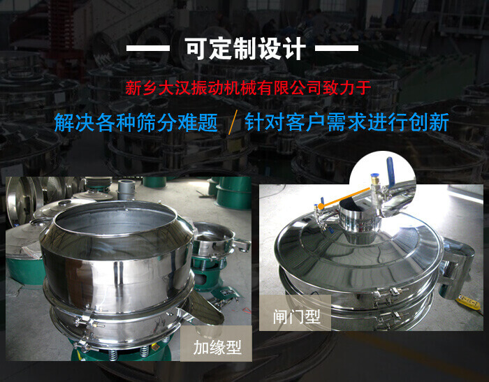 新鄉(xiāng)大漢振動(dòng)機(jī)械有限公司致力于解決各種篩分難題,多年來一直提倡為客戶定制設(shè)計(jì)麥芽粉振動(dòng)篩,因?yàn)檫@樣可以更好地滿足用戶需求,客戶需要什么,大漢機(jī)械就做什么,針對(duì)客戶需求進(jìn)行創(chuàng)新,客戶滿意就是我們滿意