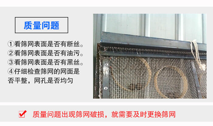 質(zhì)量問(wèn)題是首要考慮因素,如果是質(zhì)量問(wèn)題出現(xiàn)篩網(wǎng)破損,就需要及時(shí)更換篩網(wǎng)了
