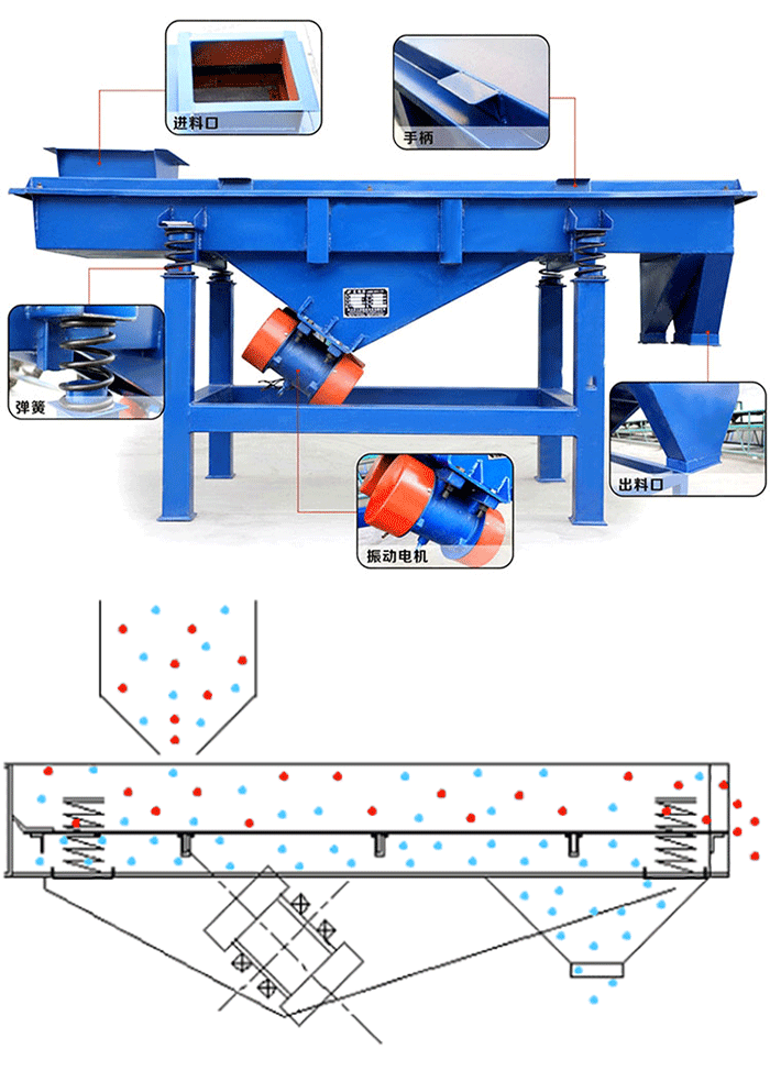 直線(xiàn)振動(dòng)篩是雙振動(dòng)電機(jī)驅(qū)動(dòng),當(dāng)兩臺(tái)振動(dòng)電機(jī)做同步、反向旋轉(zhuǎn)時(shí)使用振動(dòng)篩需要注意哪些細(xì)節(jié)呢?看這兒,其偏心塊所產(chǎn)生的激振力在平行于電機(jī)軸線(xiàn)的方向相互抵消,在垂直于電機(jī)軸的方向疊為一合力,因此直線(xiàn)篩的運(yùn)行軌跡為一直線(xiàn)。兩電機(jī)軸相對(duì)篩面有一傾角,在激振力和物料自重力的合力作用下,物料在篩面上被拋起跳躍式向前作直線(xiàn)運(yùn)動(dòng),從而達(dá)到對(duì)物料進(jìn)行篩選和分級(jí)的目的。