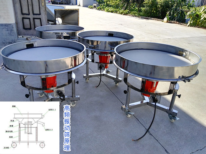 超聲波振動篩是將220v、50HZ或110v、60HZ電能轉(zhuǎn)化為38KHZ的高頻電能,輸入超聲換能器,將其變成38KHZ機械振動,從而達到高效篩分和清網(wǎng)的目的。超微細粉體接受巨大的超聲加速度,使篩面上的物料始終保持懸浮狀態(tài),從而抑制粘附、摩擦、平降、等堵網(wǎng)因素。解決了強吸附性、易團聚、高靜電、高精細、高密度、輕比重等篩分難題,使超細微粉篩分不再難事,特別適合高品質(zhì)、精細粉體的用戶使用 高頻振動篩采用筒體式偏心軸激振器及偏塊調(diào)節(jié)振幅,物料篩淌線長,篩分規(guī)格多,具有結(jié)構(gòu)可靠、激振力強、篩分效率高、振動噪音小、堅固耐用、維修方便、使用安全等特點。由于高頻振動篩采用了高頻率,一方面破壞了礦漿表面的張力和細粒物料在篩面上的高速振蕩,加速了大密度有用礦物和析離作用,增加了小于分離粒度物料與篩孔接觸的概率。