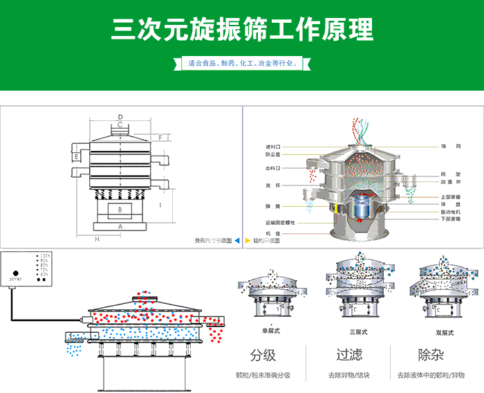三次元旋振篩,超聲波振動(dòng)篩,搖擺篩、 直線振動(dòng)篩、直排篩、高頻振動(dòng)
