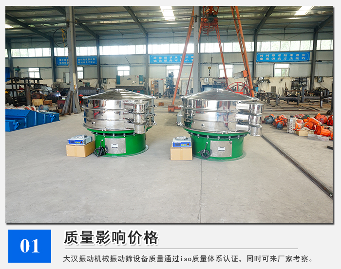 做篩分設(shè)備的廠家有很多,但是也有很多皮包公司,沒有生產(chǎn)能力,還有一部分廠家廠家為了盈利,以次充好,會(huì)在選材、生產(chǎn)環(huán)節(jié)偷工減料,看著當(dāng)時(shí)買的可便宜,但是沒想過售后問題,后續(xù)會(huì)因?yàn)樵O(shè)備質(zhì)量問題問產(chǎn)生大量費(fèi)用。大漢超聲波振動(dòng)篩質(zhì)量以與其為了一時(shí)的低價(jià)誘惑造成在設(shè)備質(zhì)量方面的疏忽是必須要避免的。大漢振動(dòng)機(jī)械振動(dòng)篩設(shè)備質(zhì)量是通過iso質(zhì)量體系認(rèn)證的,同時(shí)您也可以來大漢振動(dòng)機(jī)械考察,看一下我們的生產(chǎn)能力。好產(chǎn)品不怕比價(jià)格。