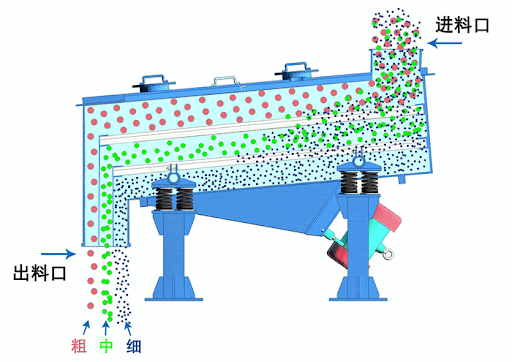工業(yè)廢料振動篩工作時,我們從進料口位置將廢料投入篩機內(nèi)部,可以人工投料,也可以對接上游設備自動投料,在雙振動電機的驅(qū)動下產(chǎn)生的振動力傳遞到篩面,廢料受振動力影響在篩面上被拋起或向前做直線運動,小于篩孔的廢料通過篩上,成為篩下物料,大于網(wǎng)孔的廢料被攔截從當前出料口排出,這樣就完成了廢料的篩分,分級。