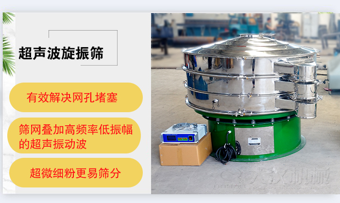 超聲波旋動(dòng)篩用振動(dòng)電機(jī)上、下兩端安裝有偏心重錘,它將電機(jī)的旋轉(zhuǎn)運(yùn)動(dòng)轉(zhuǎn)變?yōu)樗、垂直、傾斜的三次元運(yùn)動(dòng),再把這個(gè)運(yùn)動(dòng)傳遞給篩面。