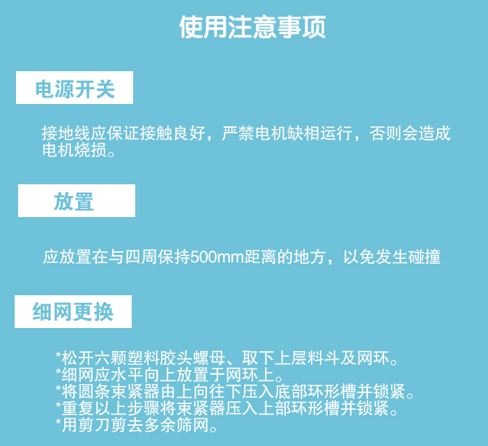 4.使用中若發(fā)生異常聲音,請(qǐng)立即停機(jī)檢查。
