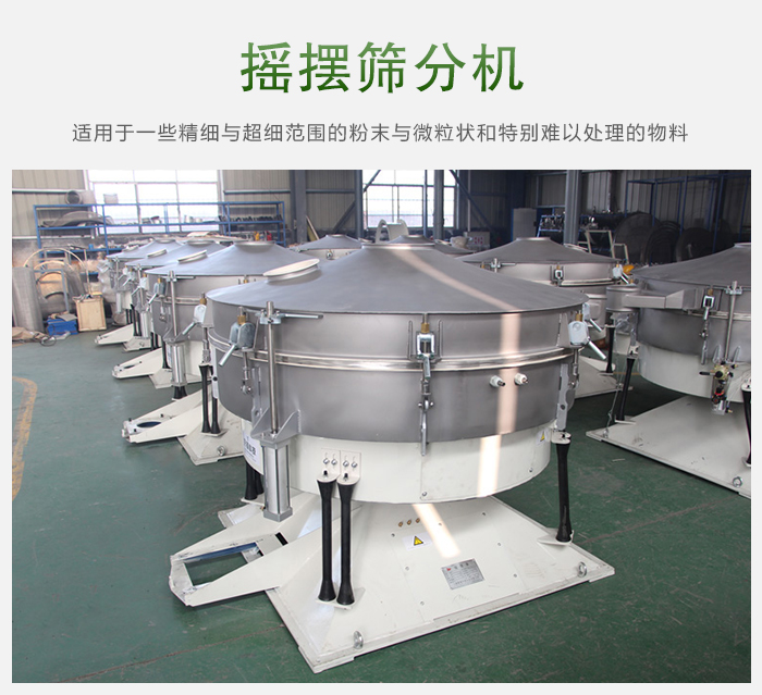 搖擺篩是一種大產(chǎn)量,高密度的篩分設(shè)備,搖擺篩分機(jī)就是對(duì)等的機(jī)械篩分模擬,與人工篩分相一致,符合一些精細(xì)與超細(xì)范圍的粉末與微粒狀物料,特別適合難以處理的物料。