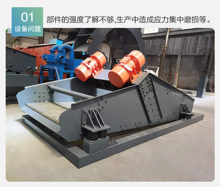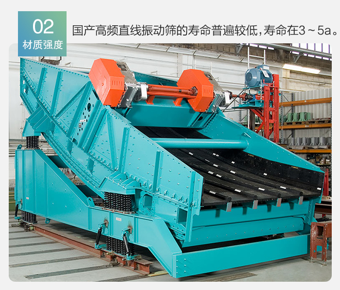 (3)對高頻直線振動篩技術(shù)參數(shù)之間的關(guān)系了解不夠。由于對高頻直線振動篩各個工藝參數(shù)或振動參數(shù)之間關(guān)系的了解不夠,在設(shè)計或選型上容易出現(xiàn)失誤,造成“跑水”和“跑粗”等現(xiàn)象,以致影響正常的生產(chǎn)。 (4)材料的結(jié)構(gòu)強度滿足不了要求。目前,國內(nèi)對材質(zhì)的研究與國外相比還有許多差距,使國產(chǎn)高頻直線振動篩的壽命普遍較低,目前壽命一般在3~5a,而國外的為8a左右,因而造成生產(chǎn)成本增加和資源浪費。